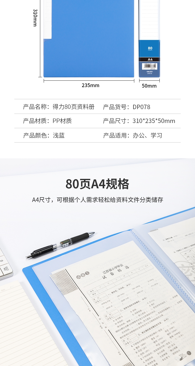 商品标题:得力DP078_80页资料册(灰蓝)(个)