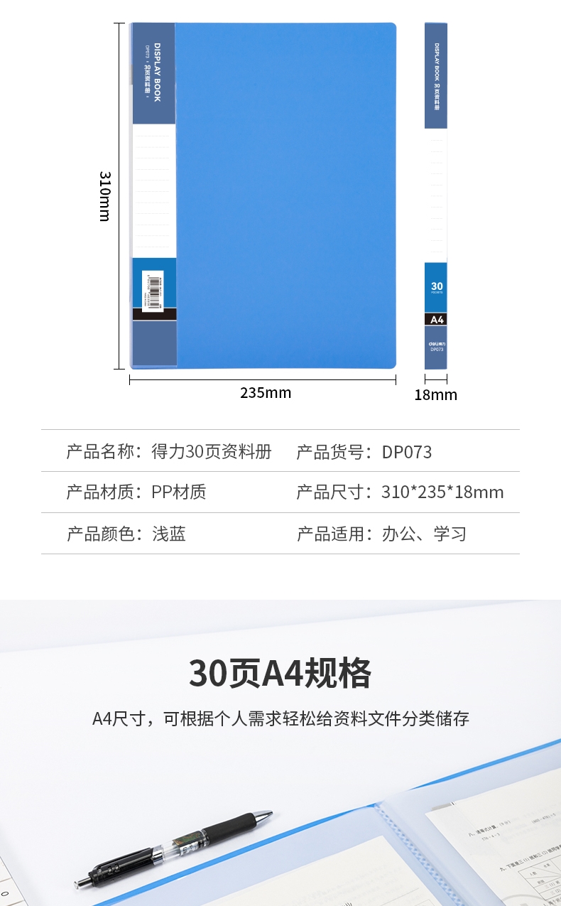 商品标题:得力DP073_30页资料册(灰蓝)(个)