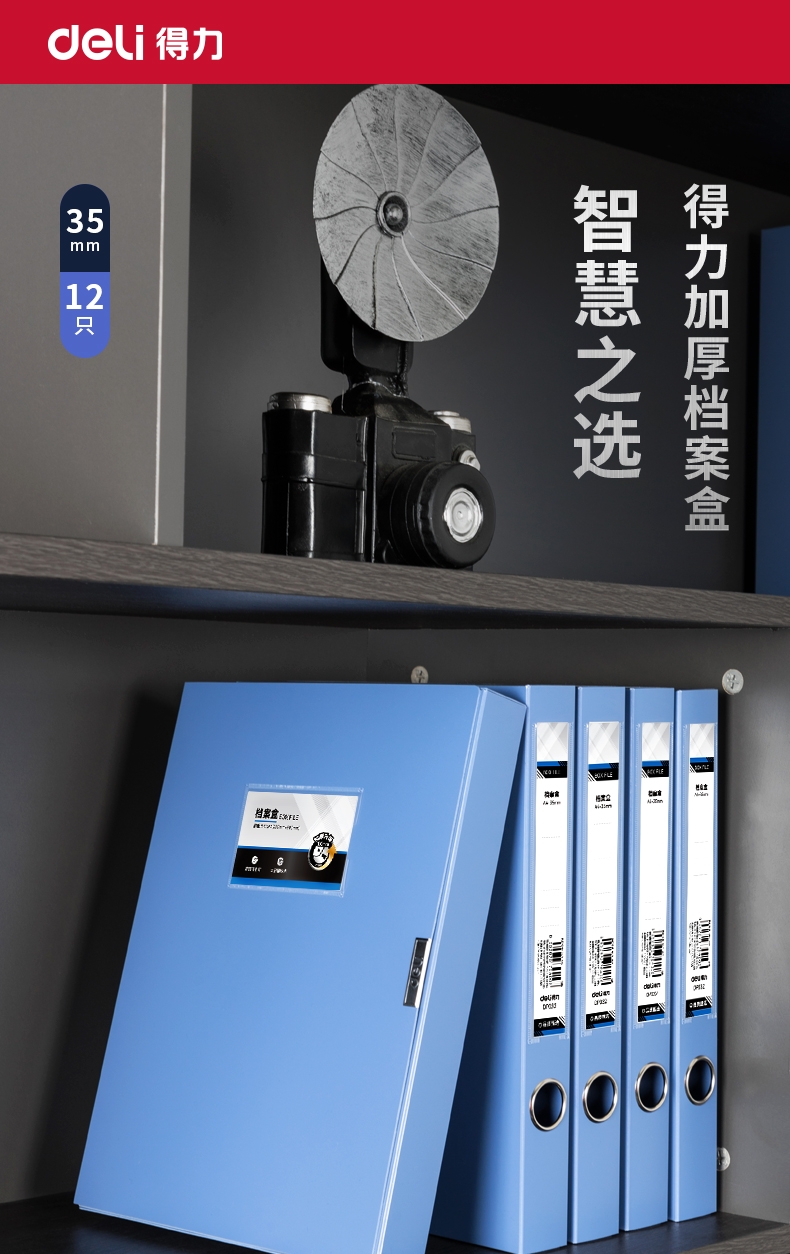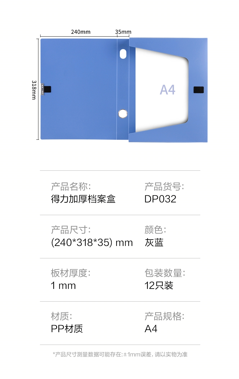 商品标题:得力DP032_35mm加厚型档案盒(灰蓝)(个)
