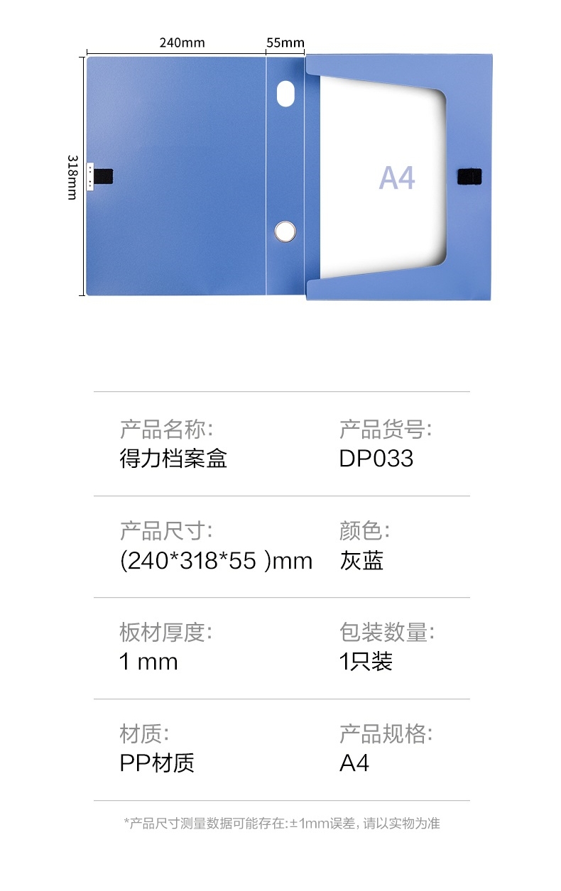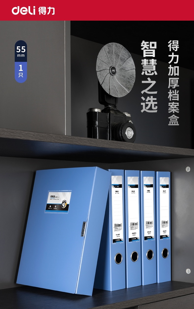 商品标题:得力DP033_55mm加厚型档案盒(灰蓝)(个)