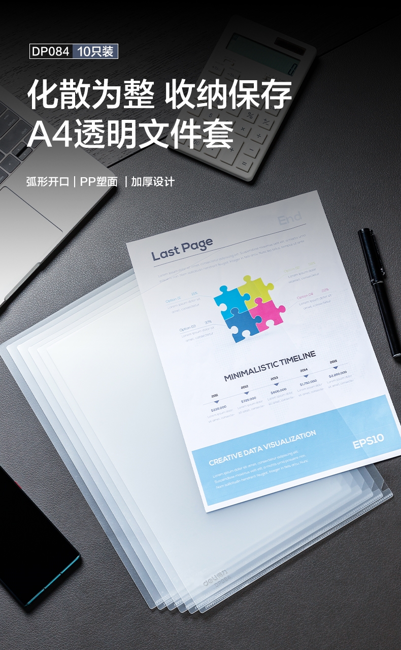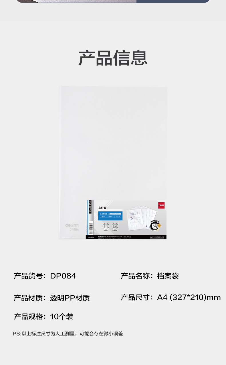 商品标题:得力DP084_A4文件套(透明)(10个/包)