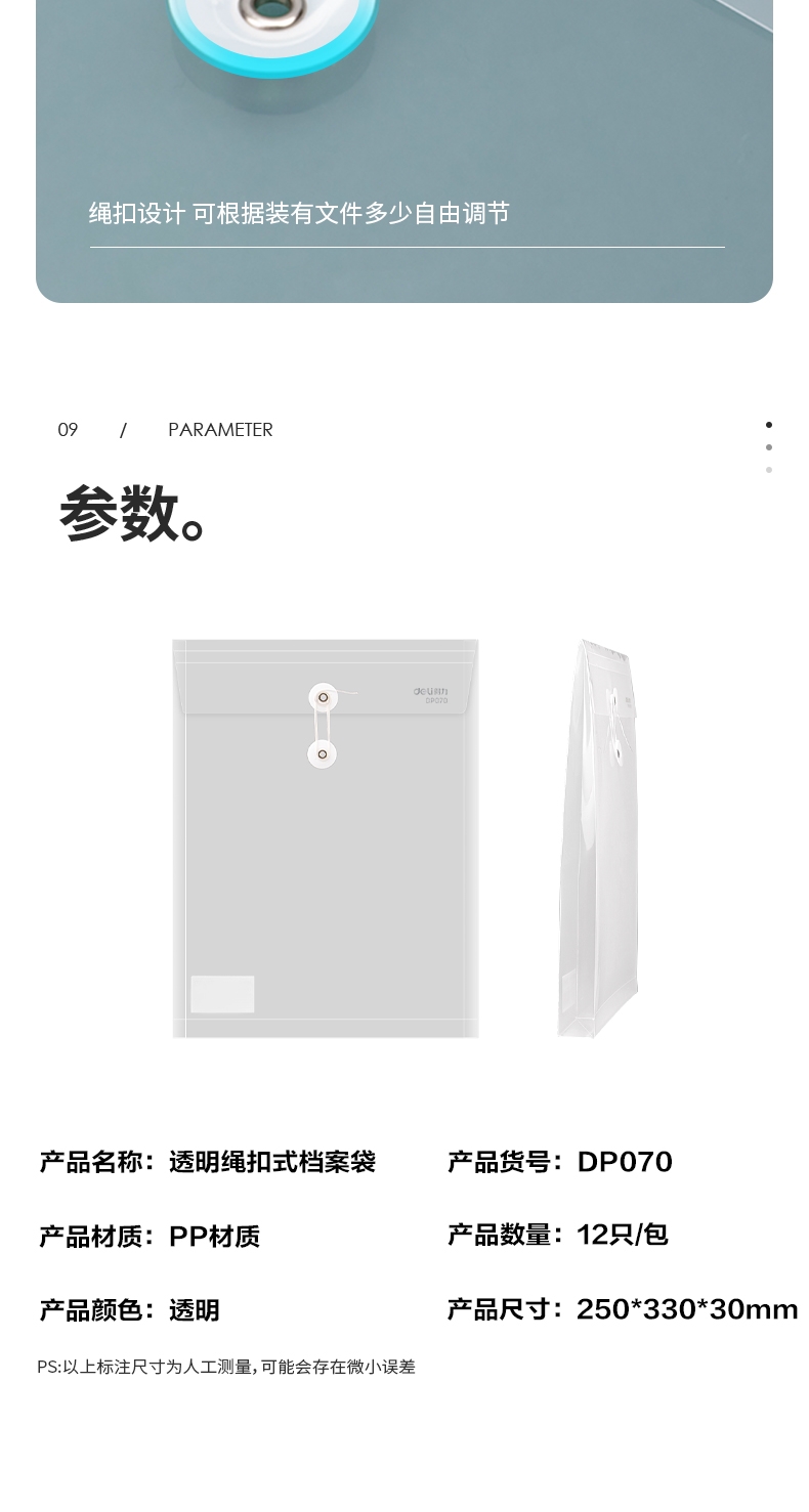 商品标题:得力DP070_A4_PP档案袋(透明)(个)