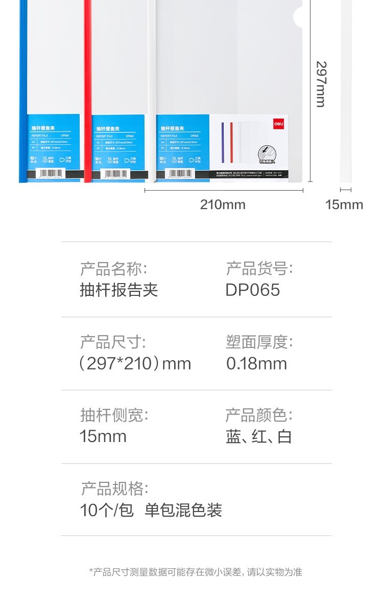 商品标题:得力DP065_15mm三角抽杆夹(混)(10个/包)