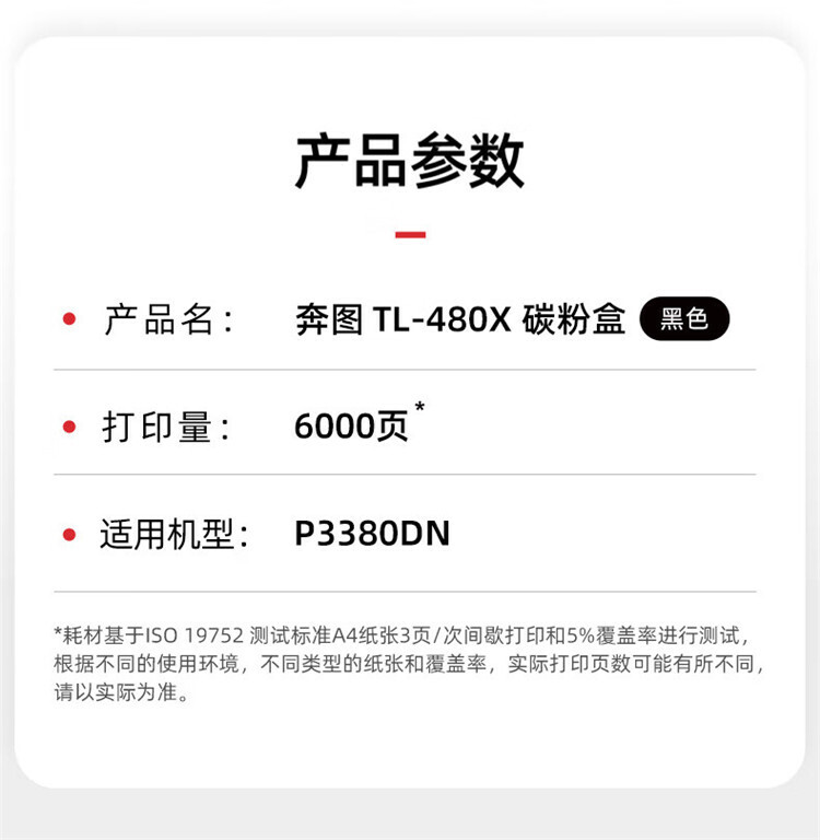 商品标题:奔图(PANTUM)TL-480X原装粉盒6000页 超大容量黑色碳粉盒 适用P3380DN/M7180DN打印机耗材(支)