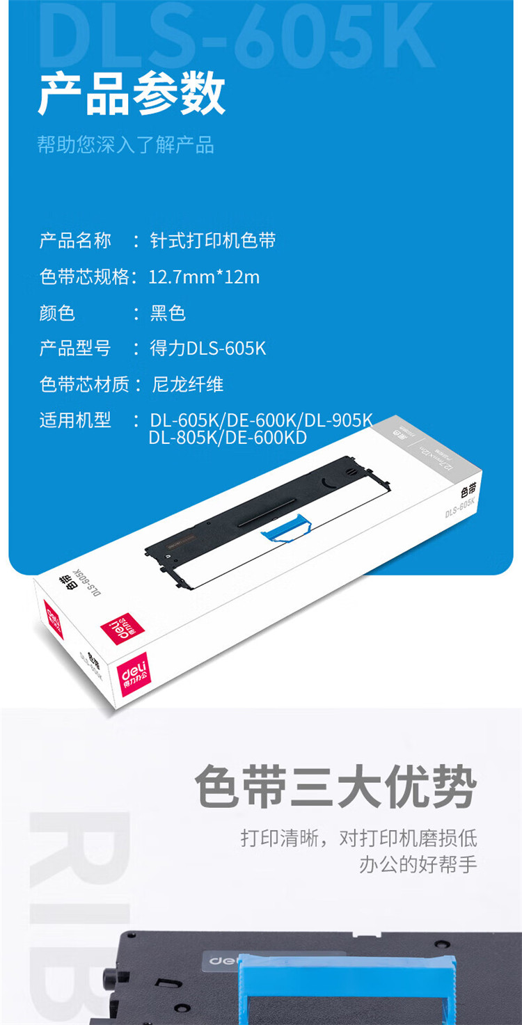 商品标题:得力DLS-605K针式打印机色带(黑)(盒)
