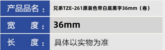 商品标题:兄弟TZE-261原装色带白底黑字36mm(卷)(适用PT3600/9700PC/9800PCN)