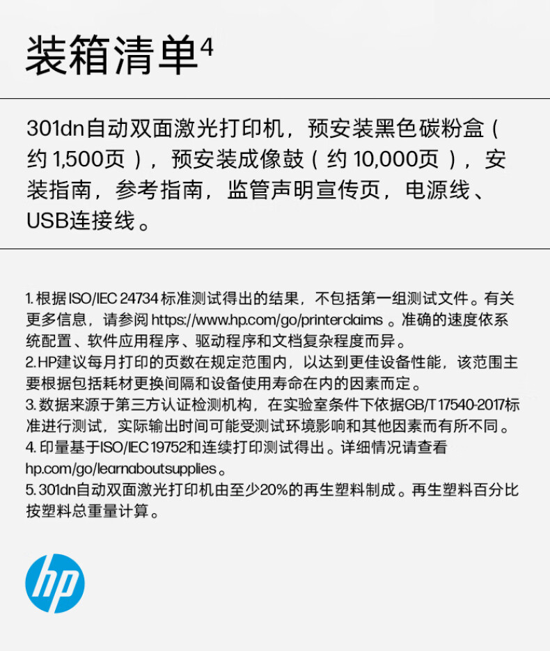 惠普(HP)Laser 301dn 自动双面激光打印机(台)
