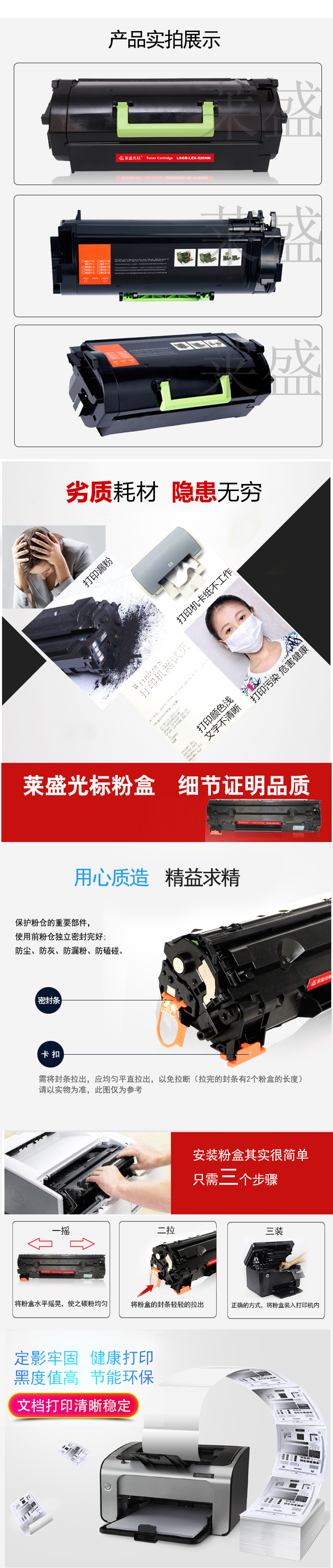 莱盛光标 LSGB-LEX-520HN 粉仓(鼓粉分离) 黑色单支装 (适用于LEXMARK MS710/711/810/811/812) 打印页数:25K (单位:支) 06.CTG.80068