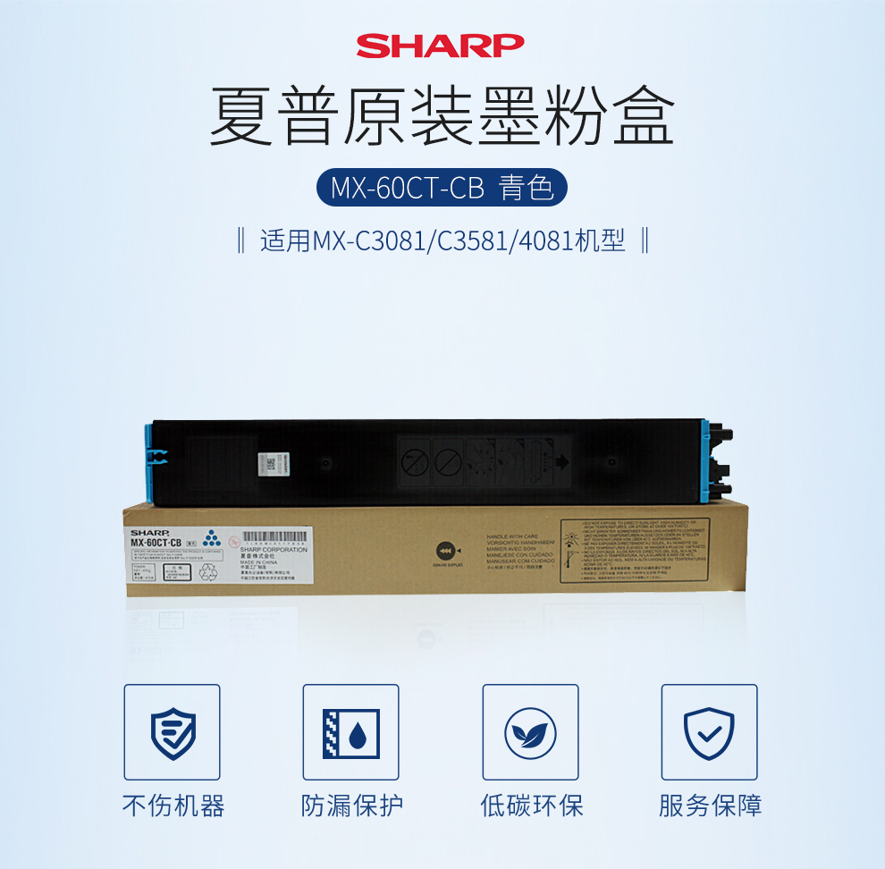 商品标题:夏普(SHARP)MX-60CT-CB 蓝 原装墨盒(单位:支)(适用MX-C3081/C3581/4081机型)