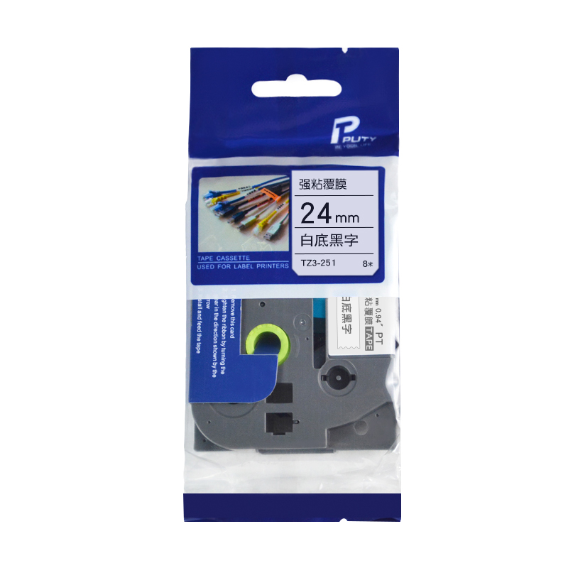 普贴TZ3-251标签打印机色带白底黑字24mm(卷)(适用兄弟PT系列标签机)