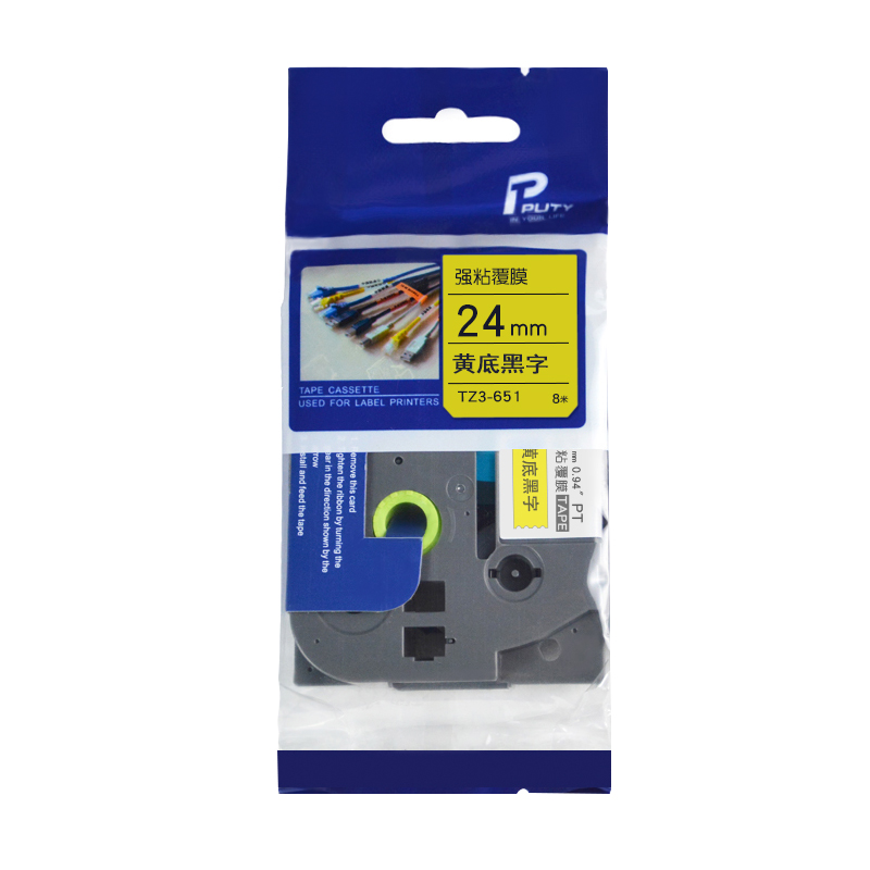 普贴TZ3-651标签打印机色带黄底黑字24mm(卷)(适用兄弟PT系列标签机)
