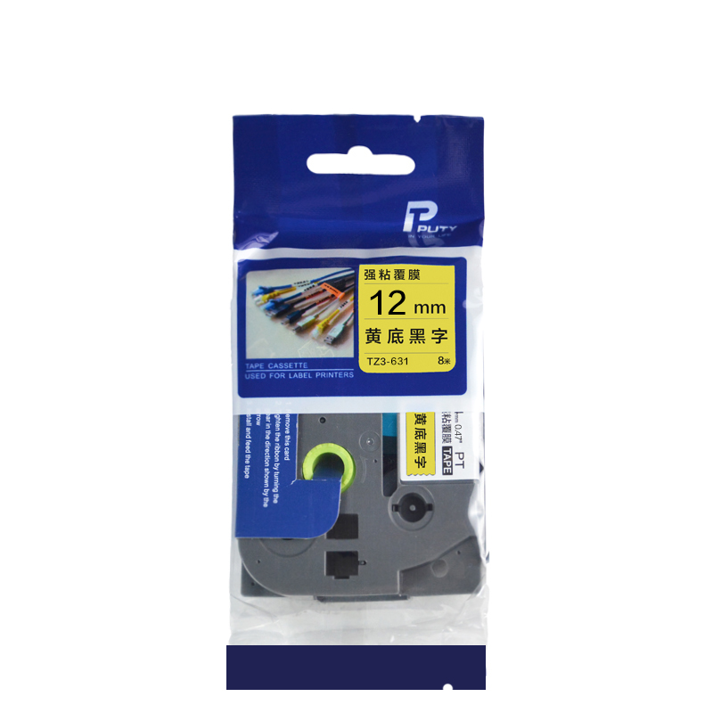 普贴TZ3-631标签打印机色带黄底黑字12mm(卷)