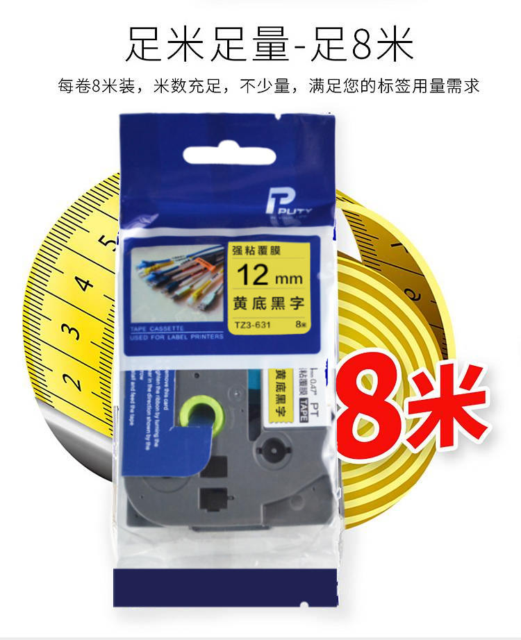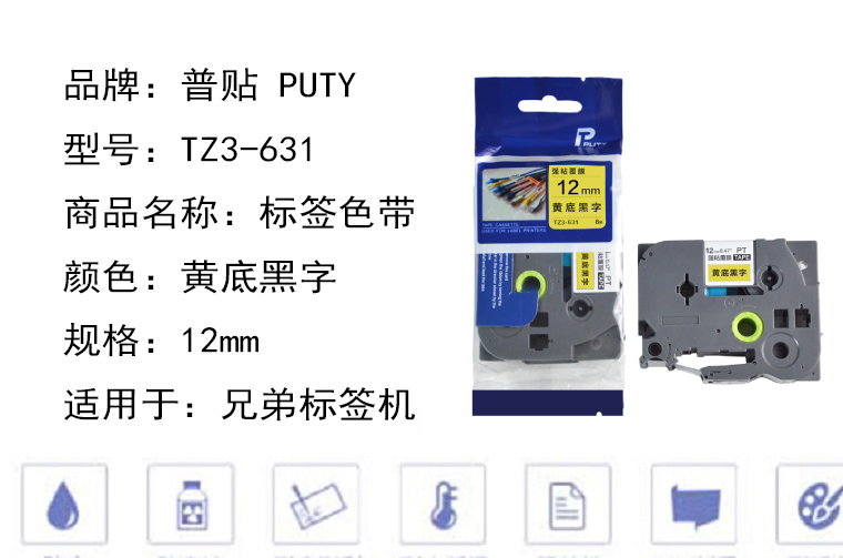 商品标题:普贴TZ3-631标签打印机色带黄底黑字12mm(卷)