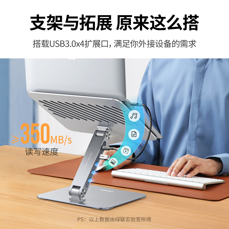 商品标题:绿联60975可升降笔记本支架 银色/附带USB3.0分线器(个)