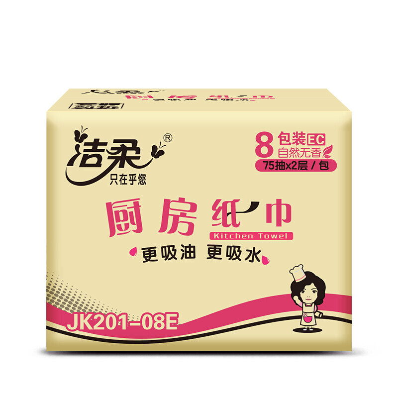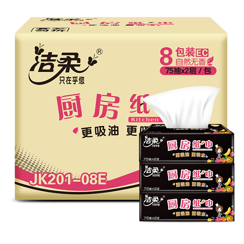 洁柔JK201-08E厨房用纸210*215mm2层75抽/包8*1(箱)
