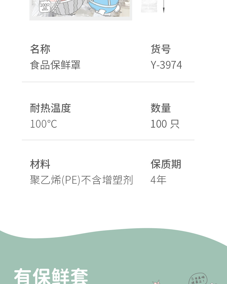 商品标题:宜洁Y-3974保鲜罩一次性保鲜膜套100只/包(单位:包)