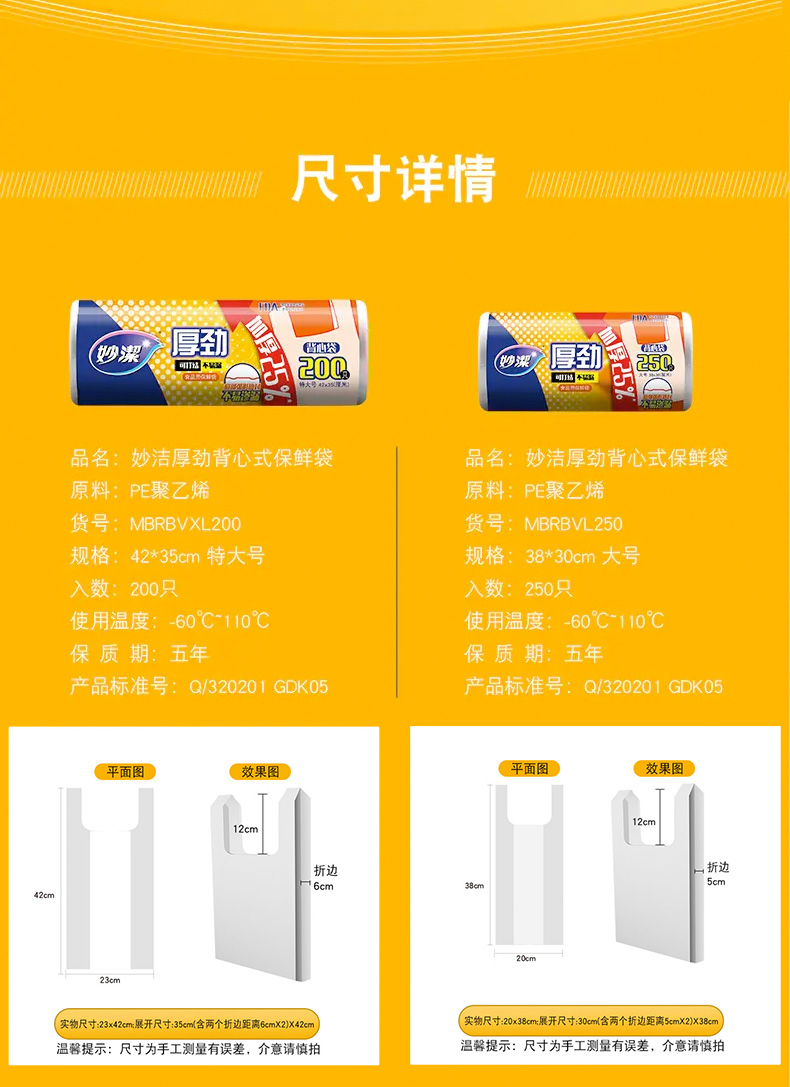 商品标题:妙洁(MIAOJIE)MBRBVL250保鲜膜/保鲜袋背心式保鲜袋大号