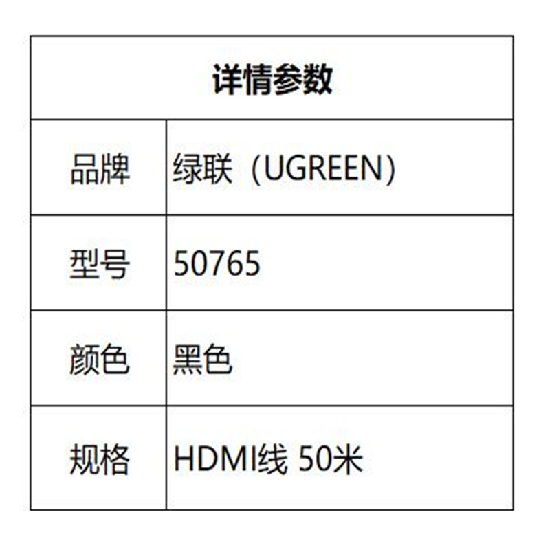商品标题:绿联 50765 HDMI线数字高清线 50米(根)
