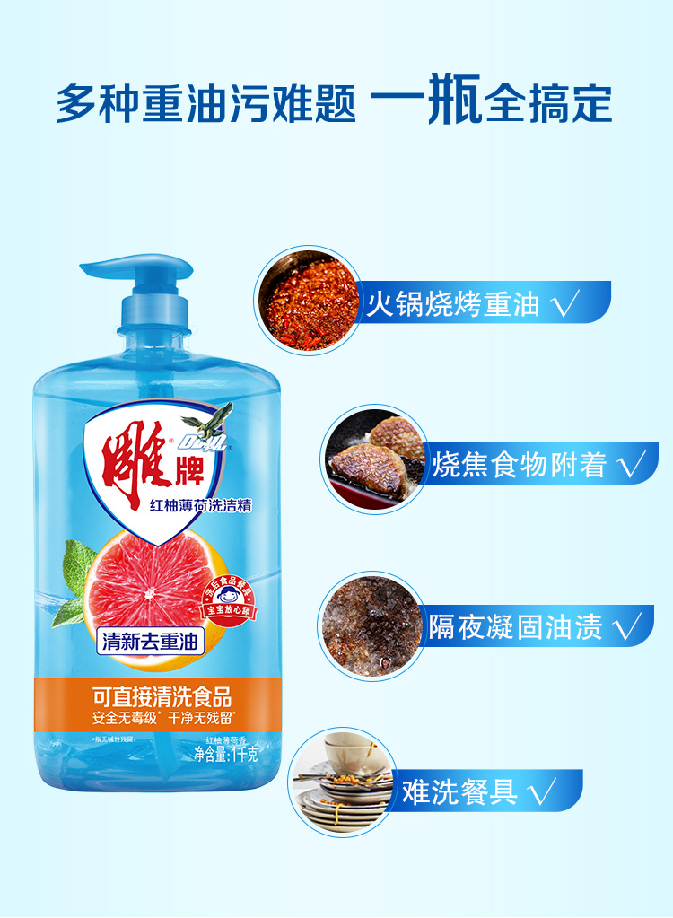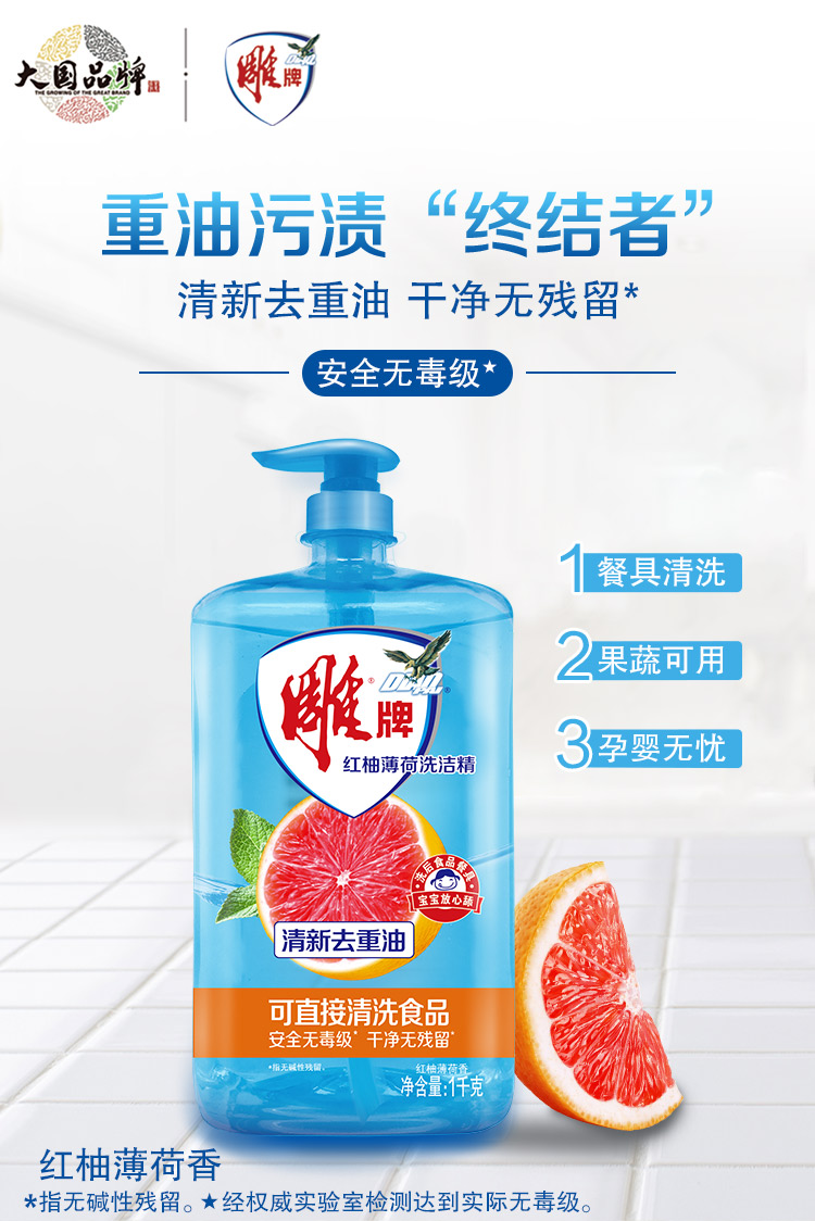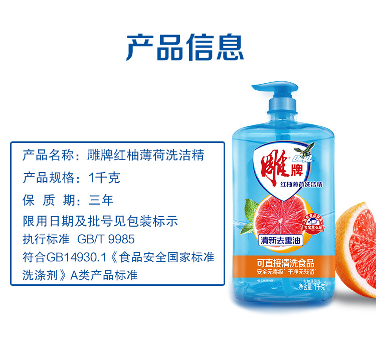 商品标题:雕牌红柚薄荷洗洁精1kg(瓶)