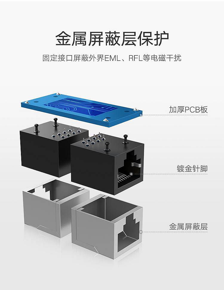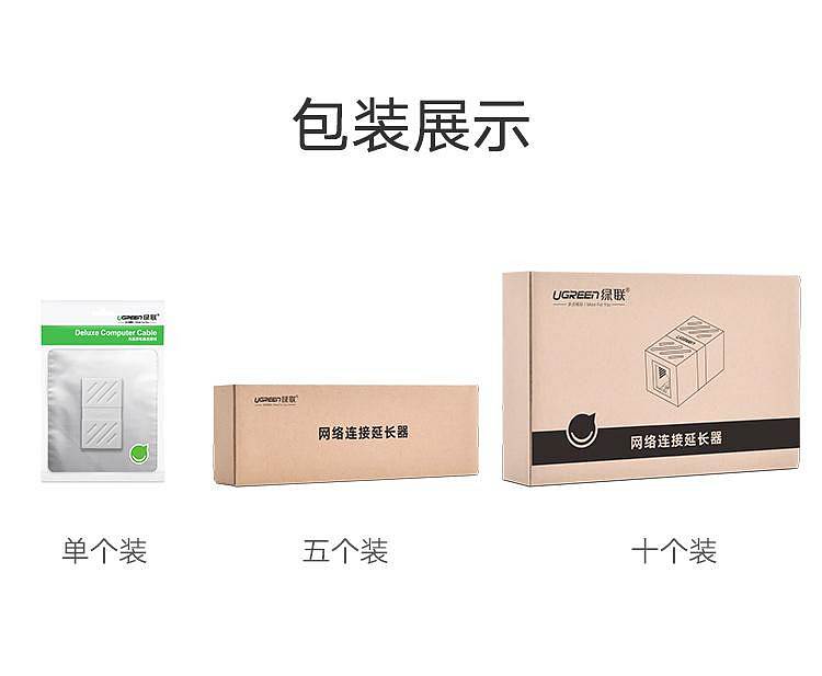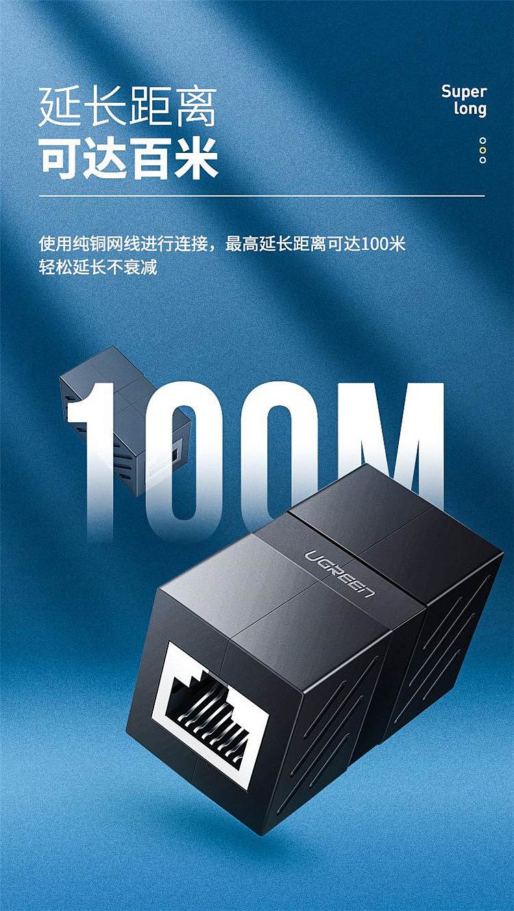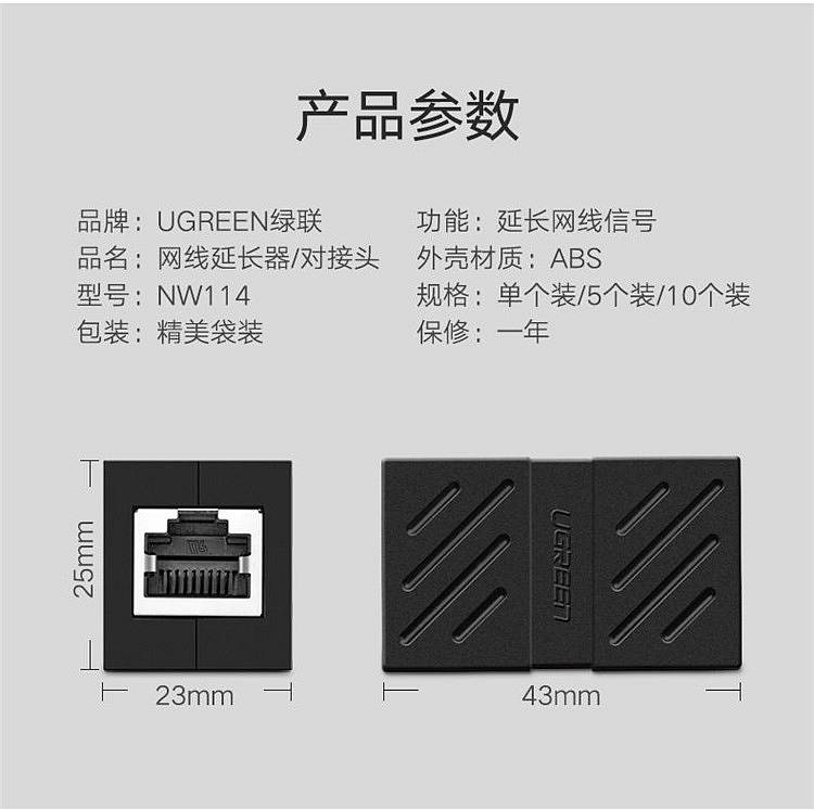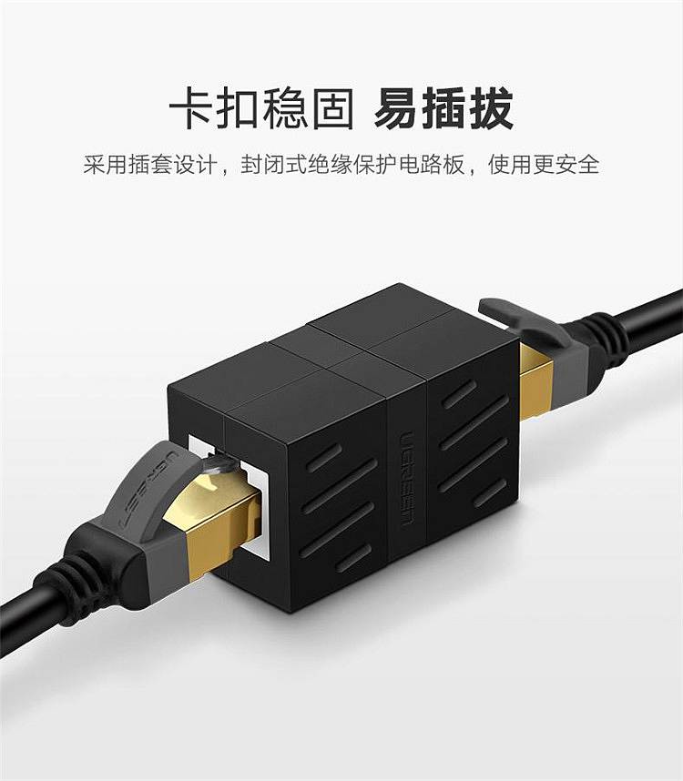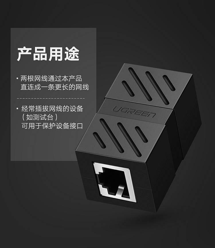 商品标题:绿联20390网线连接器直通头黑RJ45屏蔽单个装(个)