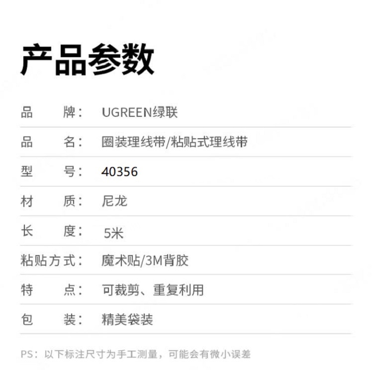 商品标题:绿联40356魔术理线带5M(单位:卷)