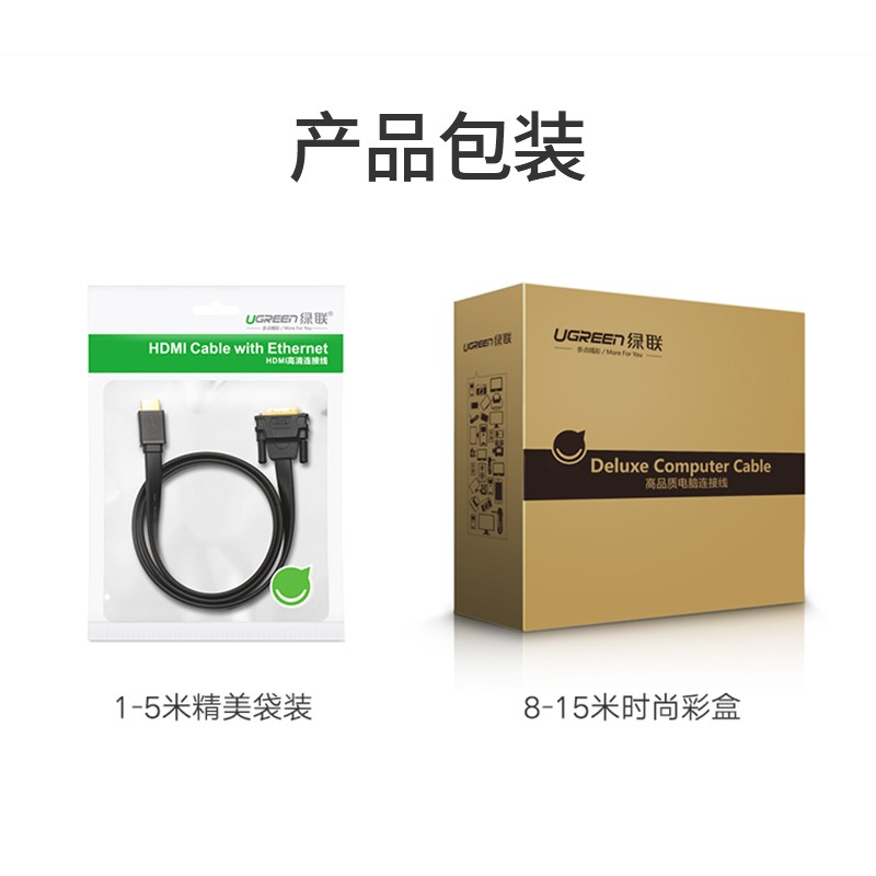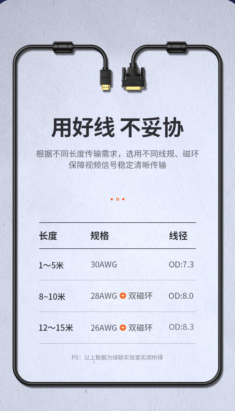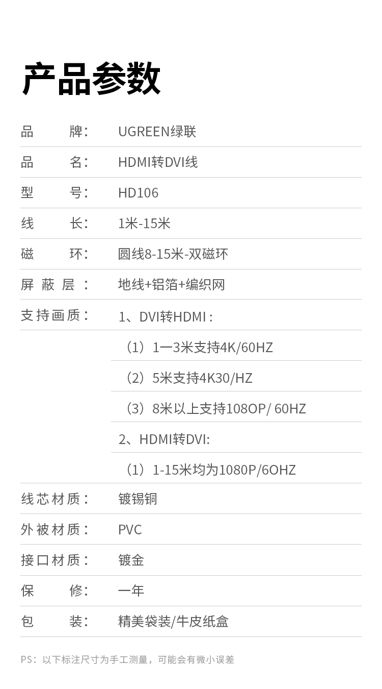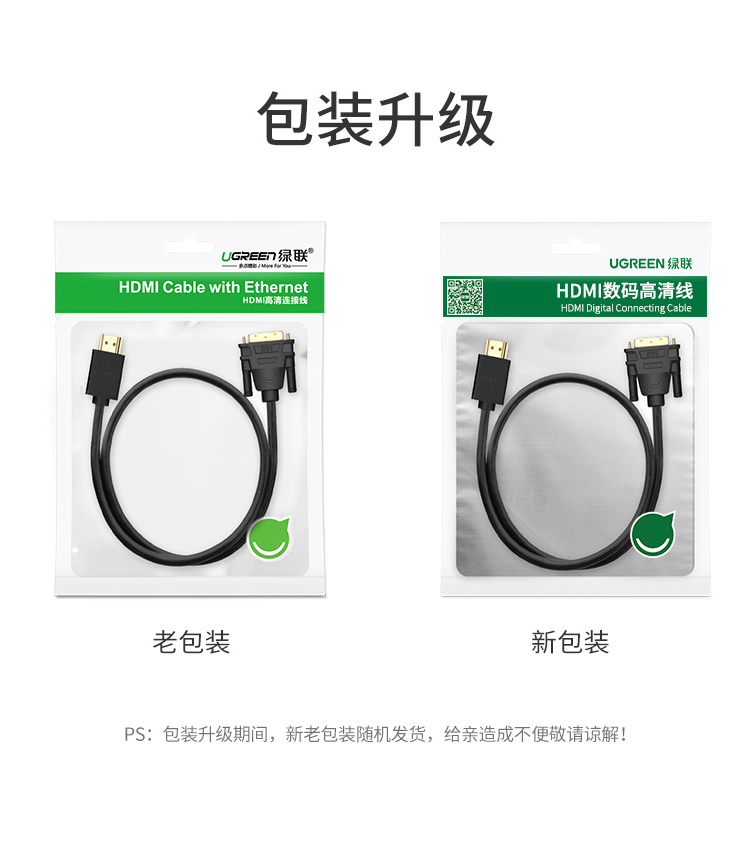 商品标题:绿联10135/HDMI转DVI双向转接线黑色2米(根)
