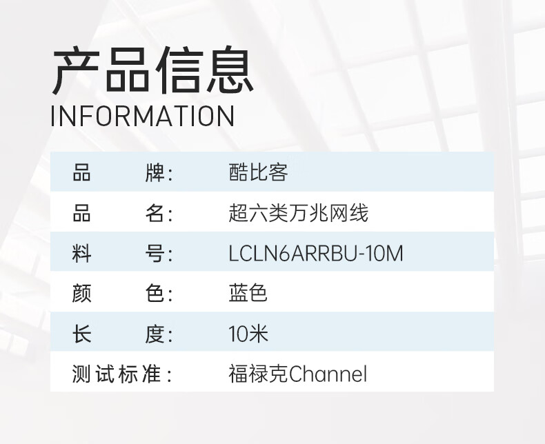 商品标题:酷比客LCLN6ARRBU-10M超六类网线(根)