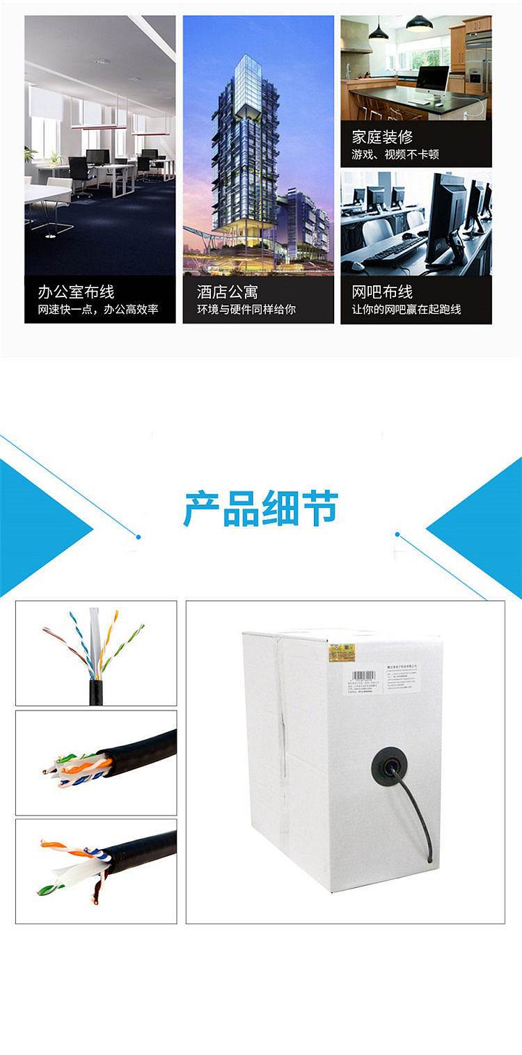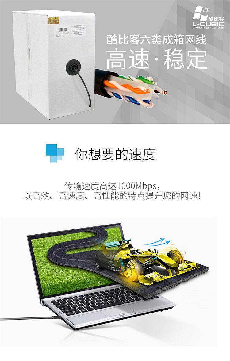 商品标题:酷比客LCLN6RRBK-305M六类非屏蔽成箱网线305M/箱(箱)
