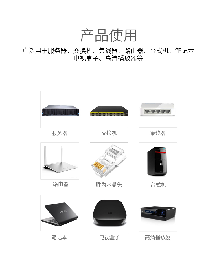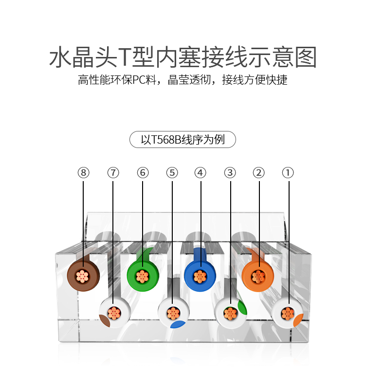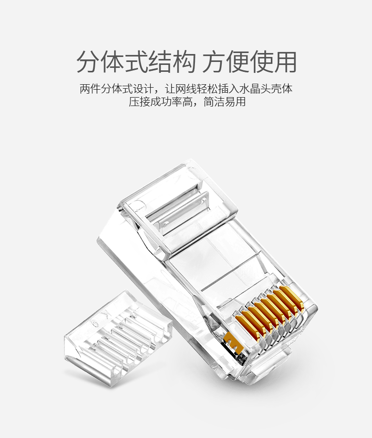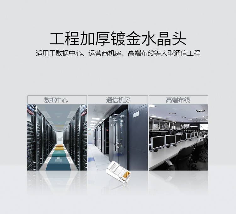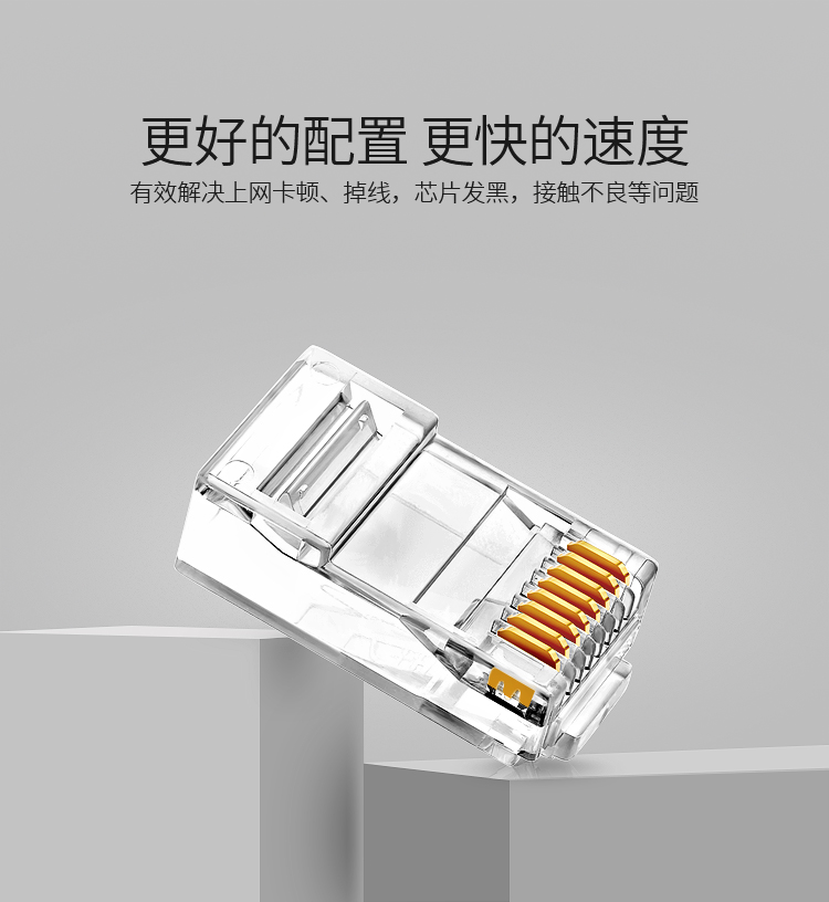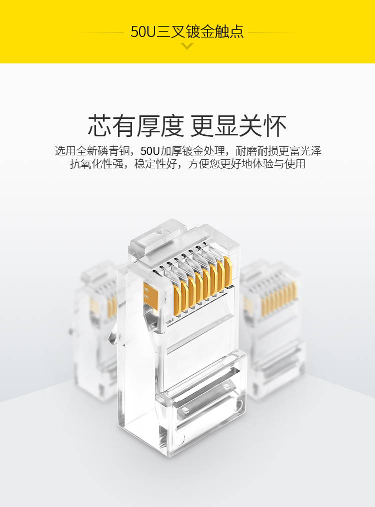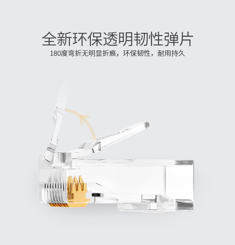 商品标题:胜为RCA-3100100个/盒50U镀金接头非屏蔽六类网络水晶头透明(盒)