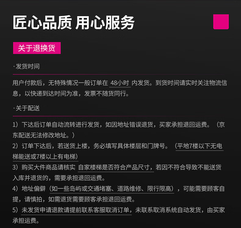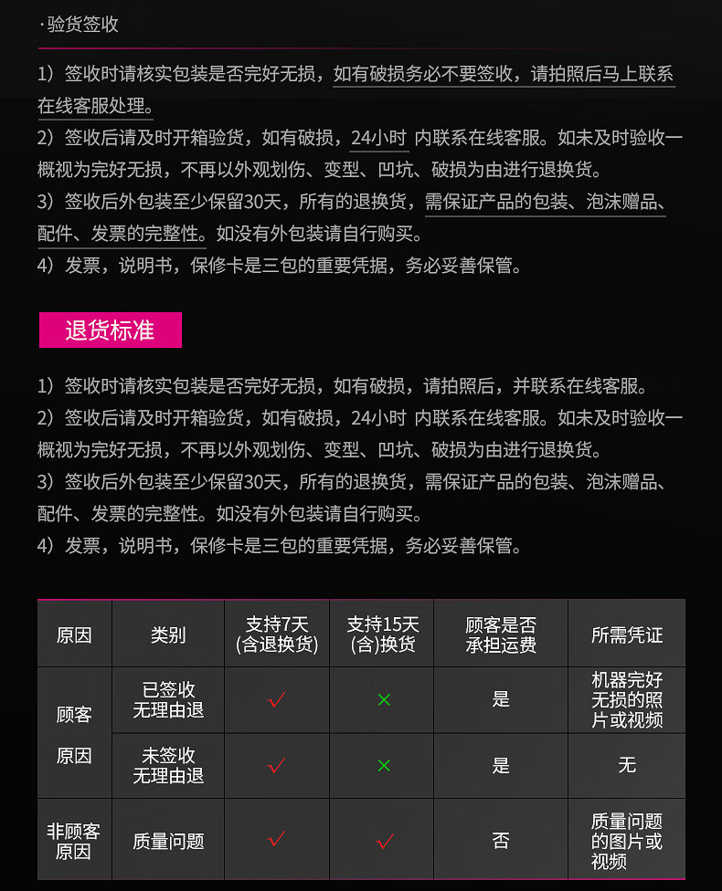 售后服务承诺:支持7天内无理由退货服务