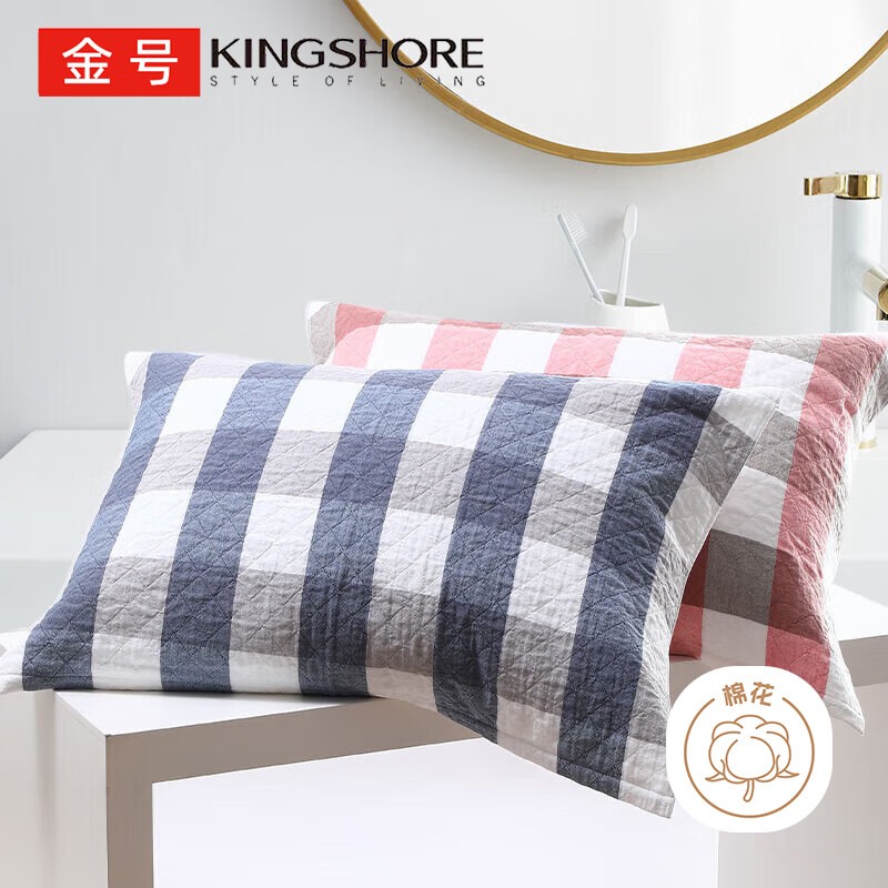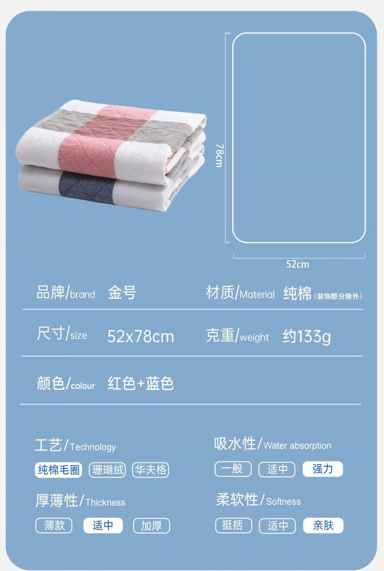 商品标题:金号纯棉枕巾G2022W 双人对枕透气吸汗红+蓝 52*78cm133g(对)