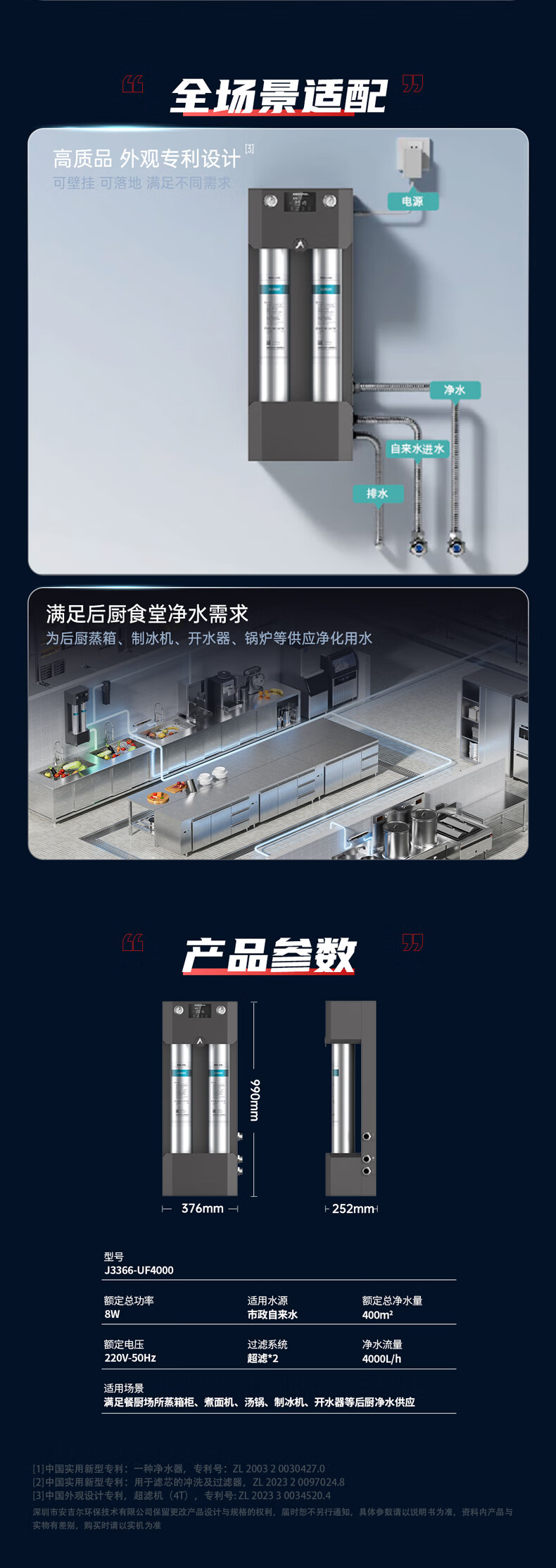 商品标题:安吉尔(angel)J3366-UFS4000 餐厨系统净水设备(台)