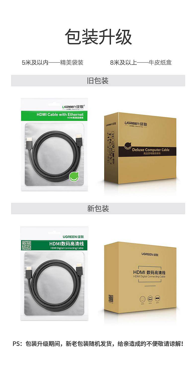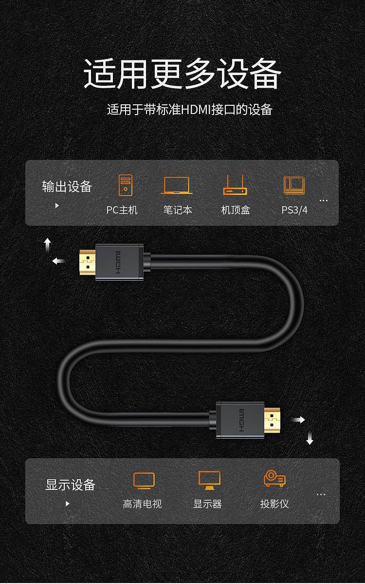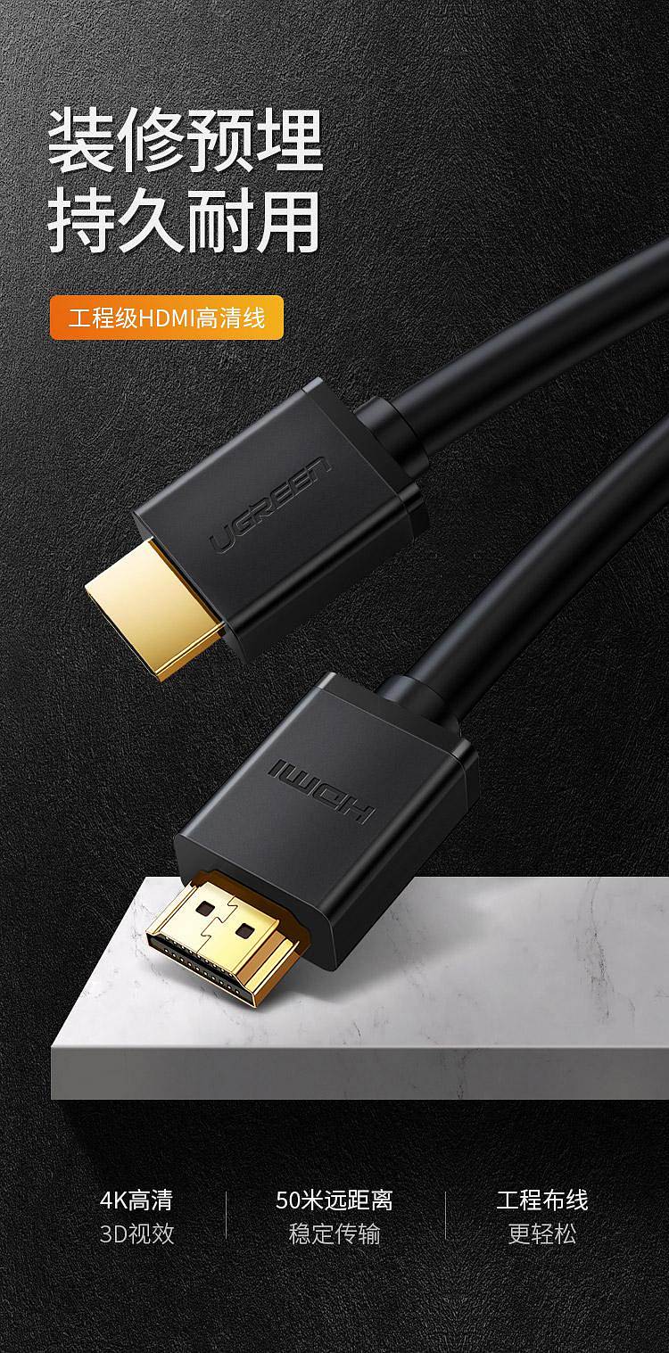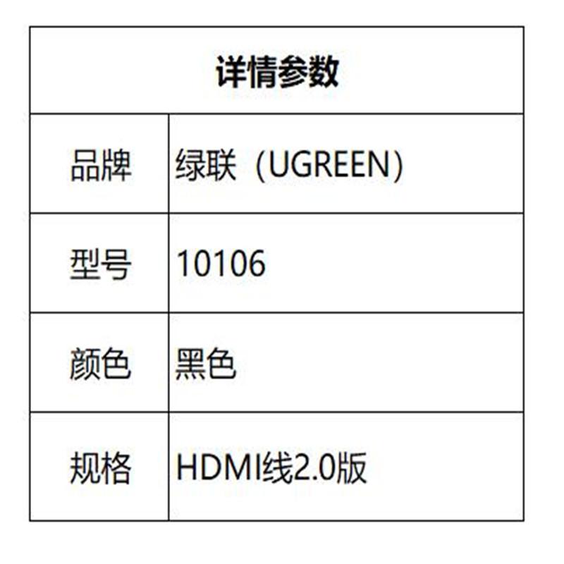 商品标题:绿联10106HDMI线2.0版4K数字高清线1米连接线(根)