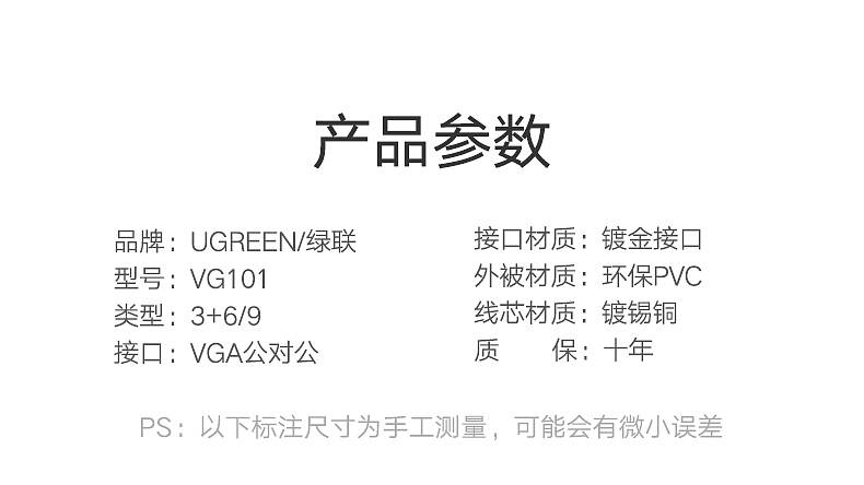 商品标题:绿联11630VGA视频线1.5米(条)