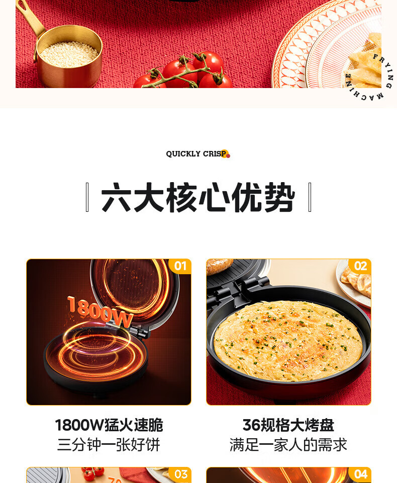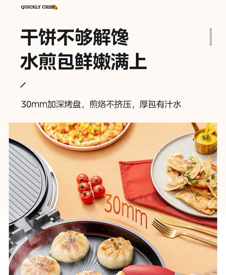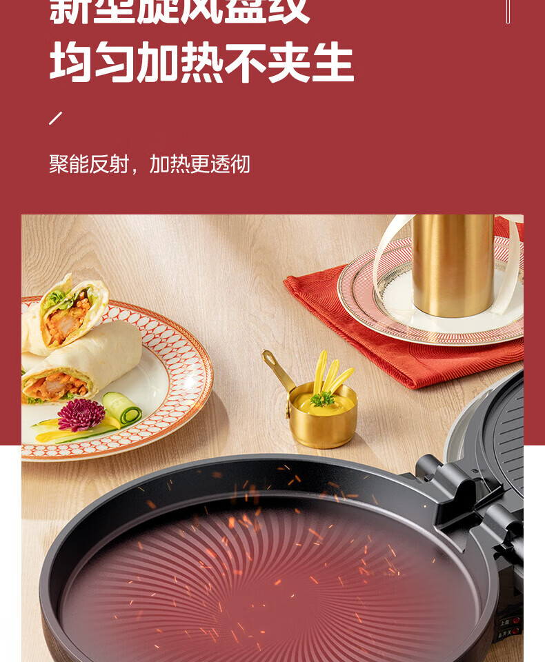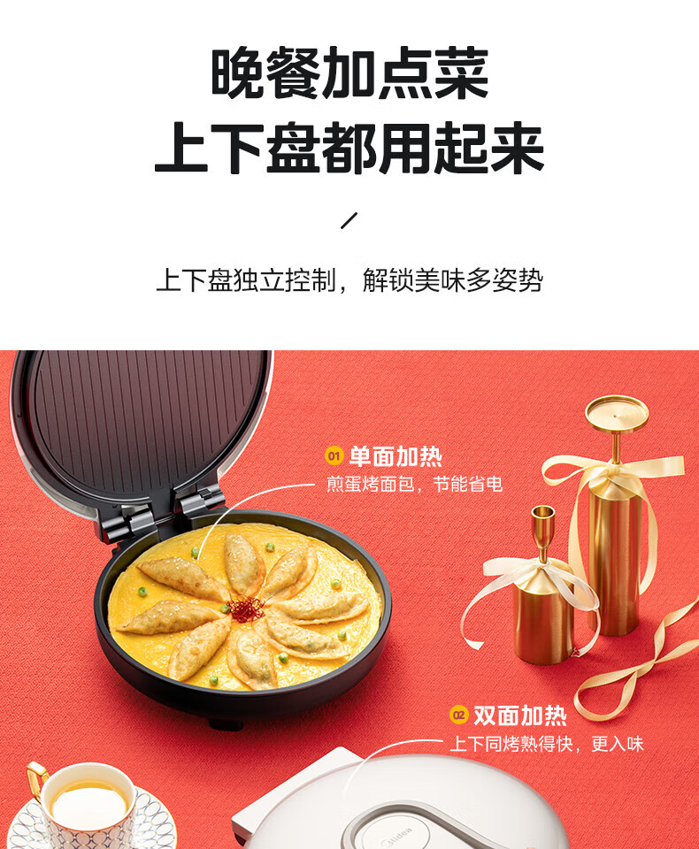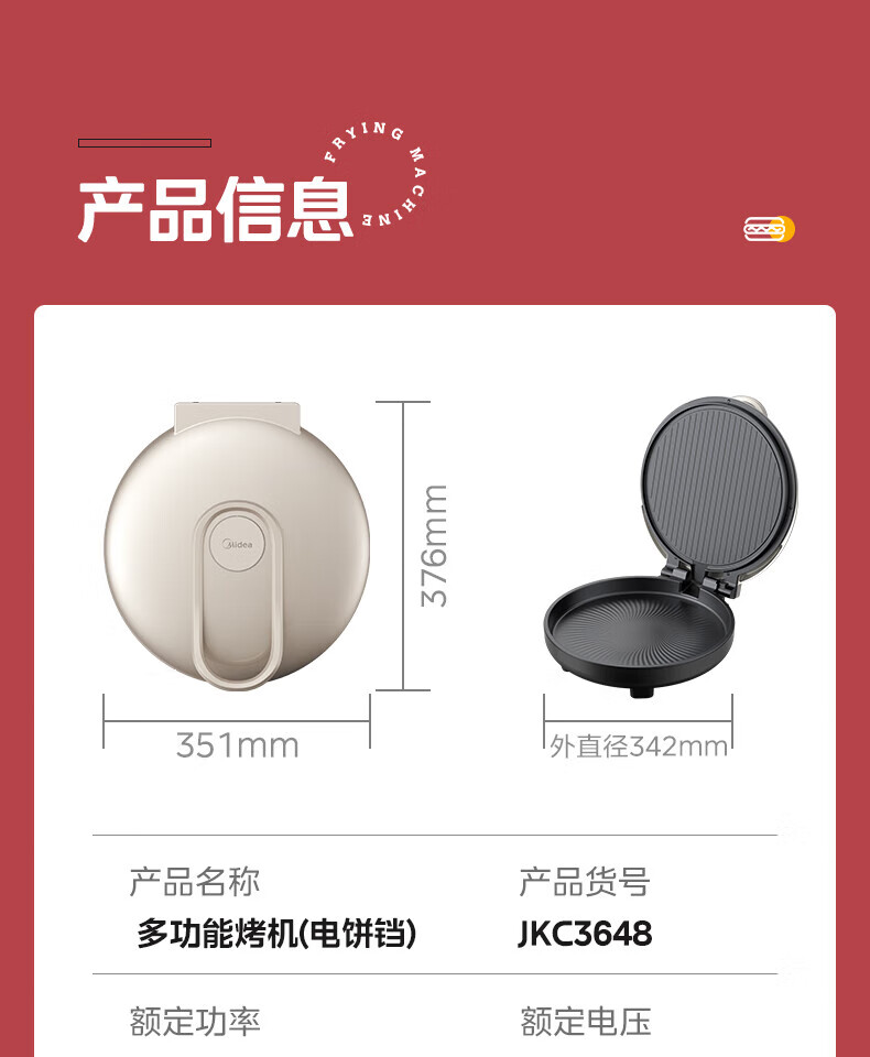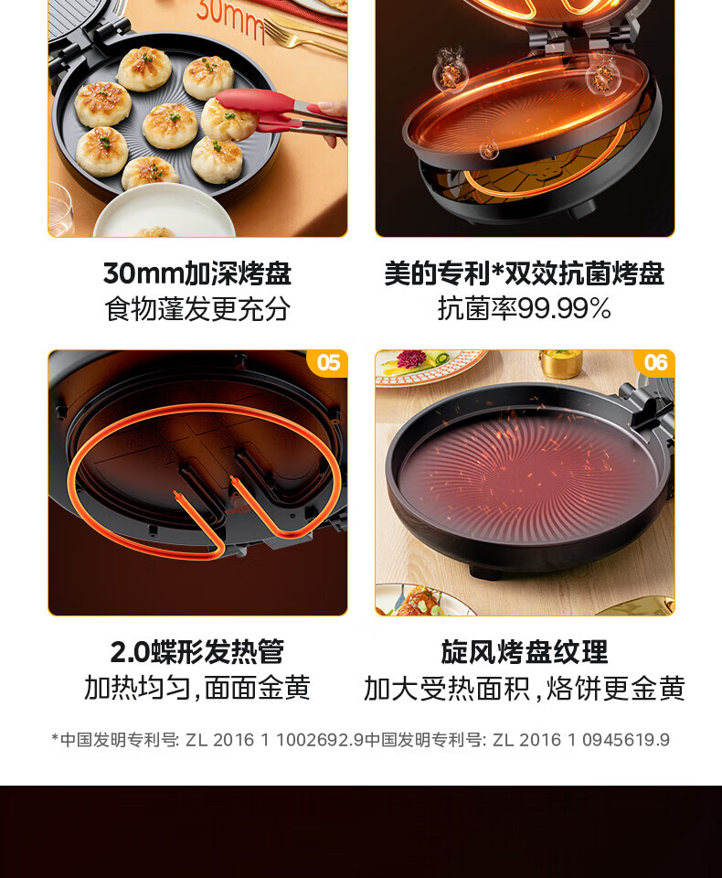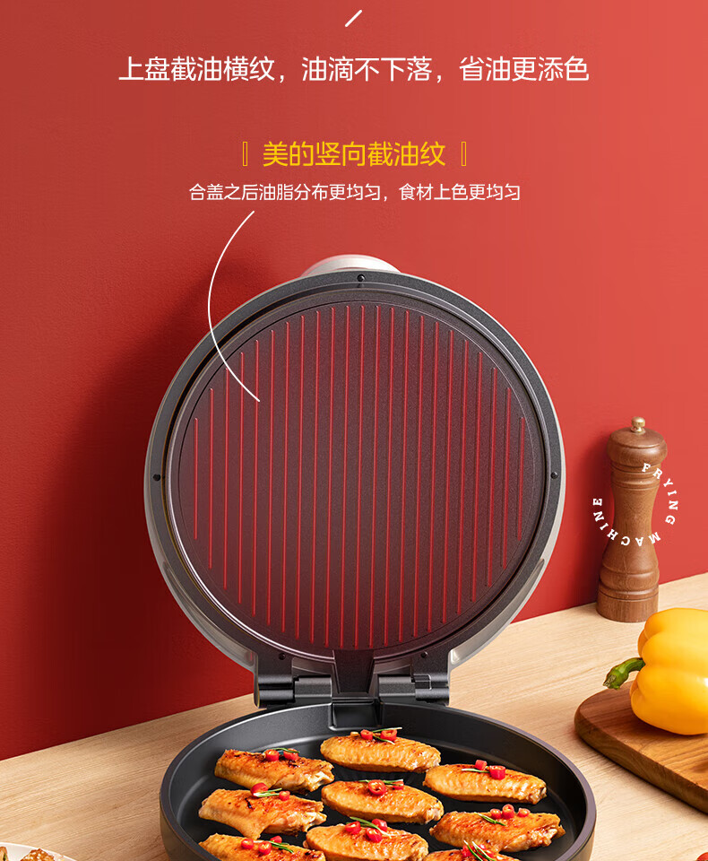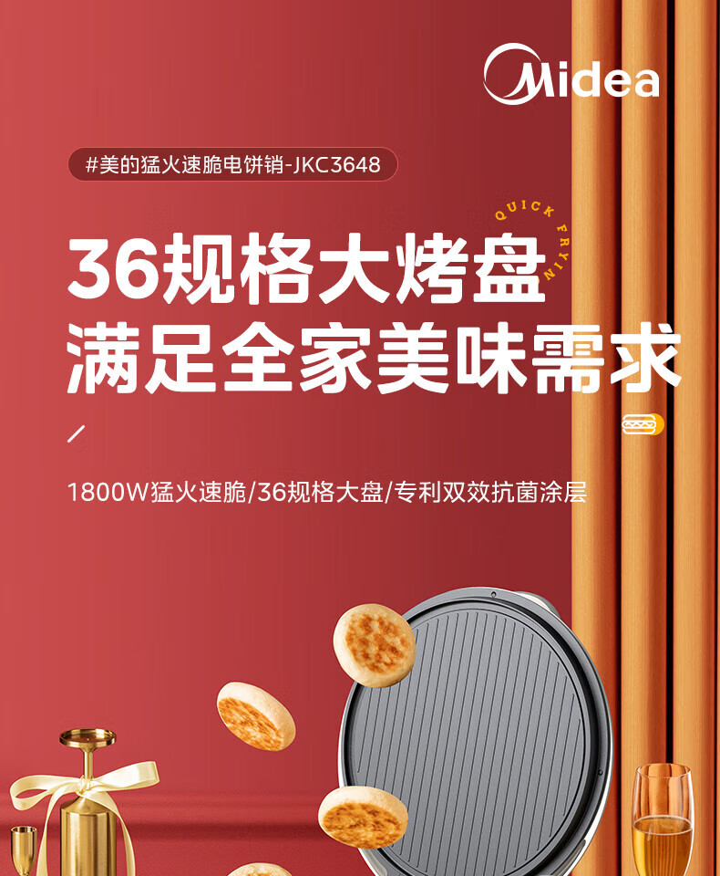 美的电饼铛 30mm加深烤盘双面加热大功率1800W烙饼机MC-JKC3648(台)
