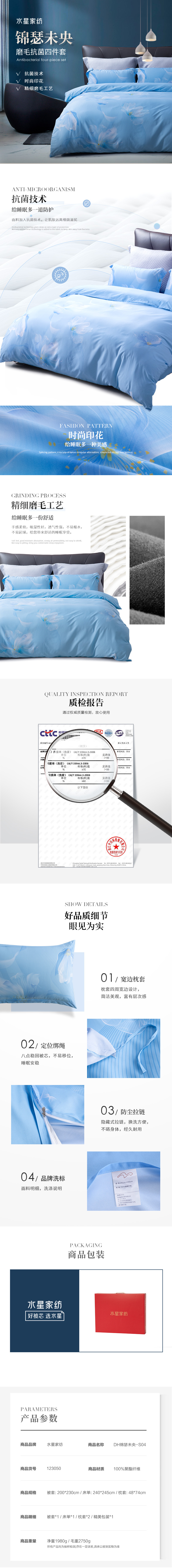 商品标题:水星家纺123050全涤抗菌印花四件套 DH锦瑟未央200*230cm(套)