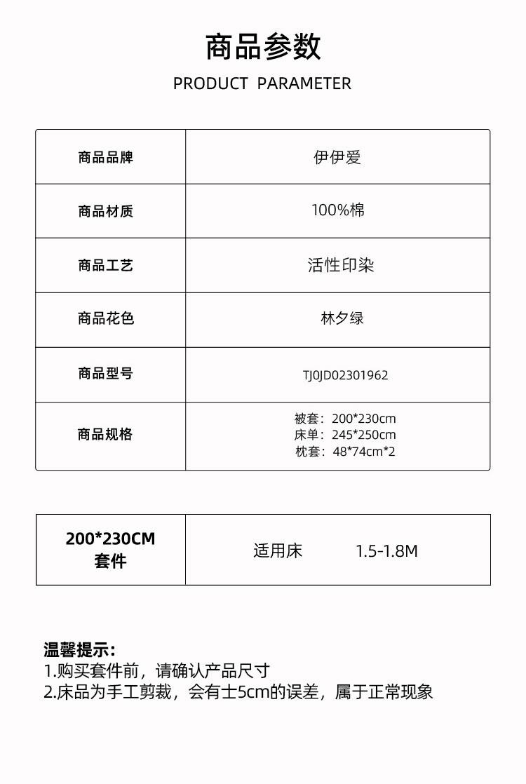 伊伊爱TJ0JD02301962加密40S铂金柔棉四件套200*230cm(单位:套)