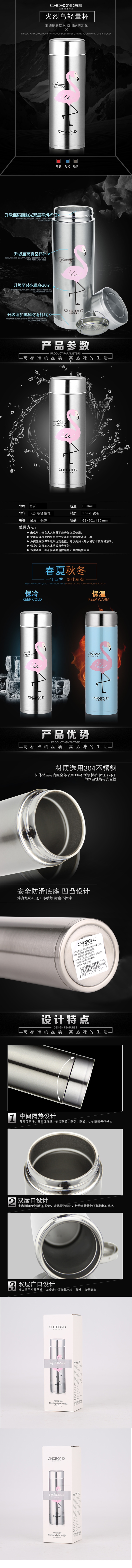 肖邦CB-Z81火烈鸟轻量杯保温杯300mL 银色(单位:个)