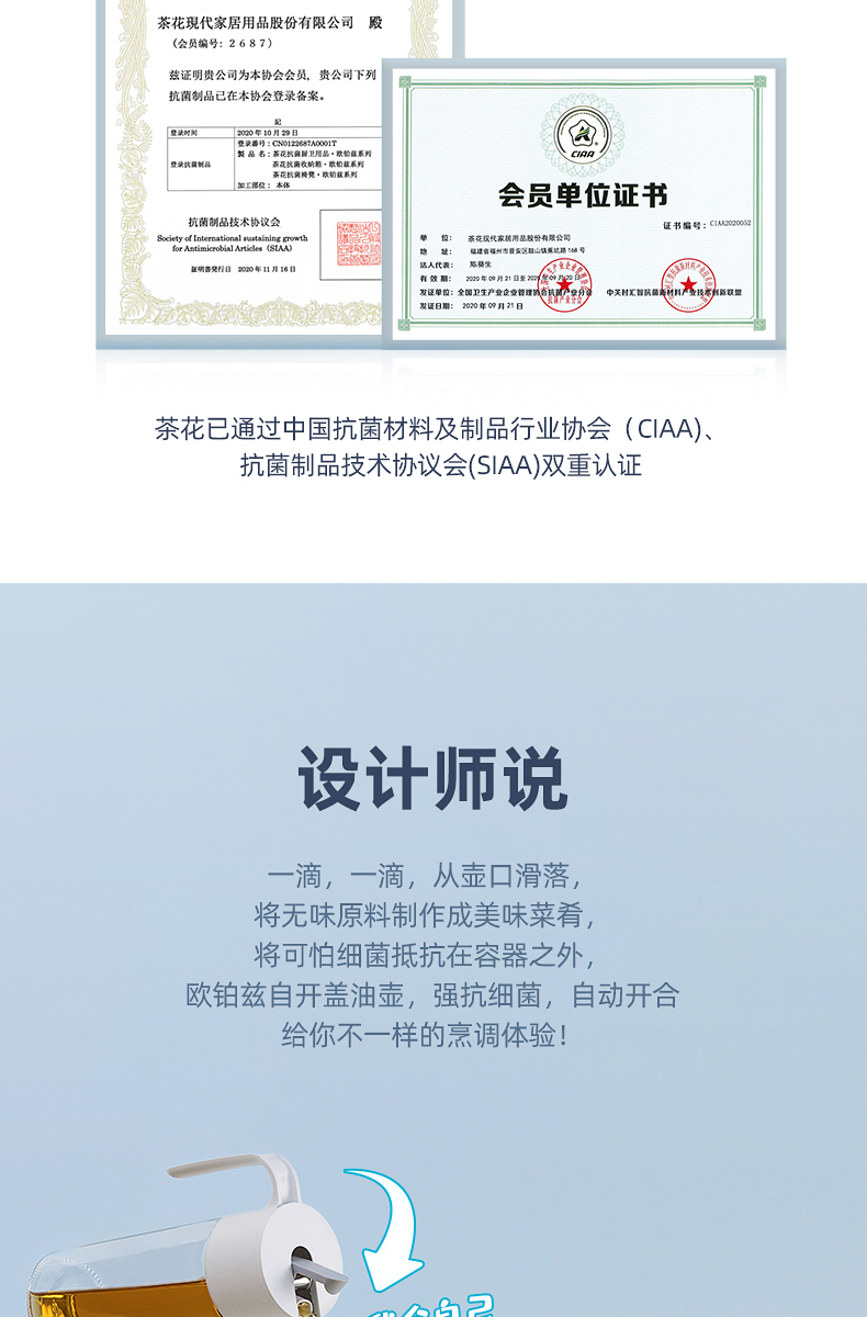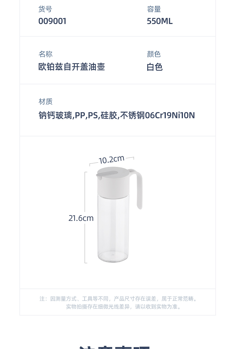 商品标题:茶花(CHAHUA)009001 欧铂兹*自开盖油壶550ml (个)