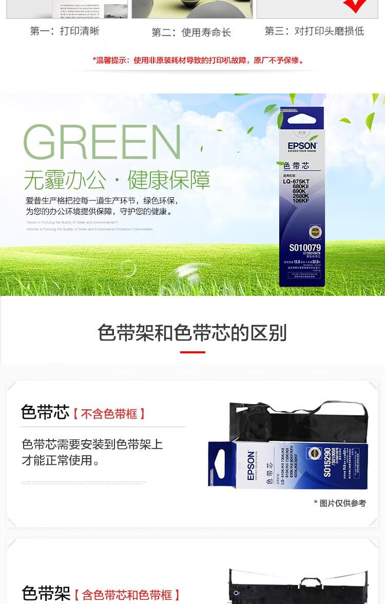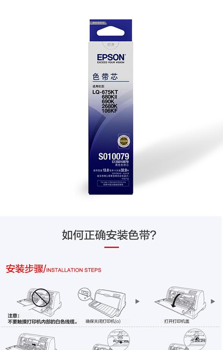 商品标题:爱普生(EPSON)S010079 原装色带芯 黑色单支装(适用爱普生LQ-675KT/680KII/690K/2680K/106KF机型)打印量:1000万字符量(单位:支)
