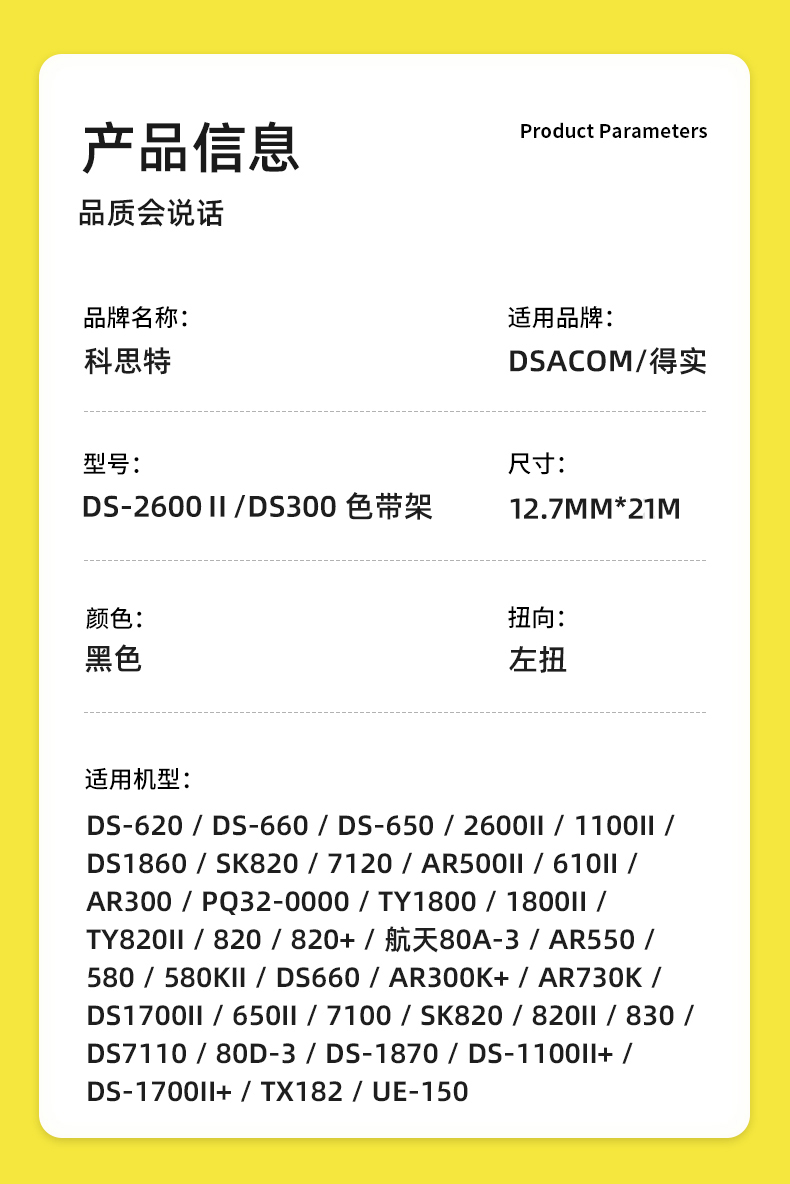商品标题:科思特(KST)兼容K DS-2600Ⅱ/DS300 色带架 黑色单支装(适用得实DS-620/DS-660/DS-650/2600II/1100II/DS1860)12.7mm*20m(支)