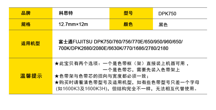商品标题:科思特(KST)K FUJITSU DPK750 BK 兼容色带架 黑色(支)