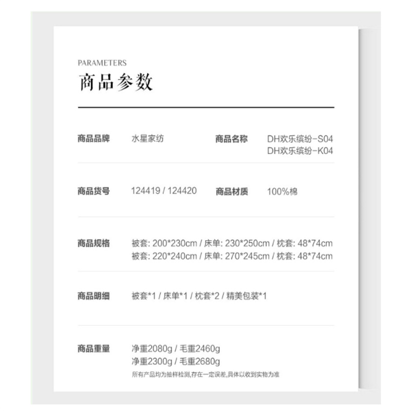 商品标题:水星家纺 124419 全棉印花抗菌四件套欢乐缤纷200cm×230cm(套)