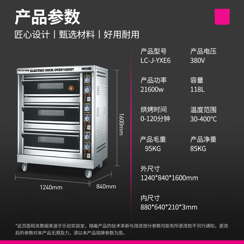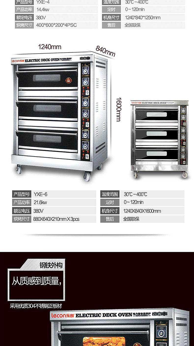 商品标题:乐创(lecon)LC-J-YXE6 380V商用三层六盘电烤箱(台)