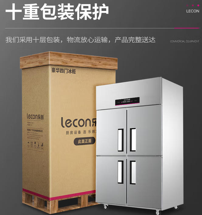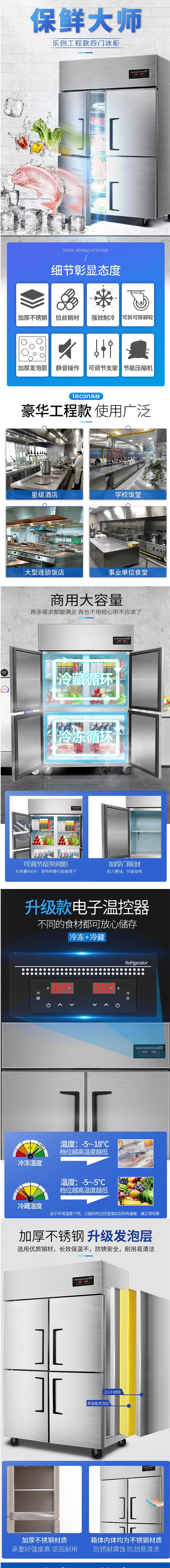 商品标题:乐创 (lecon) LC-J-SM03商用四门冰柜 立式厨房髙身雪冷藏冷冻保鲜高柜 双压缩机冰箱 双温【工程款】(台)