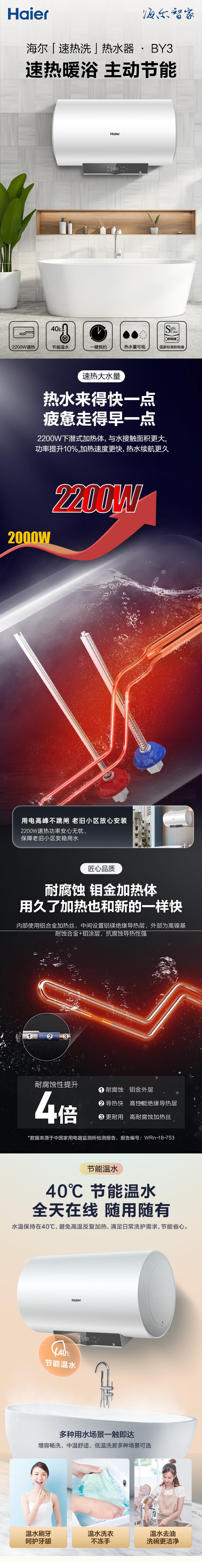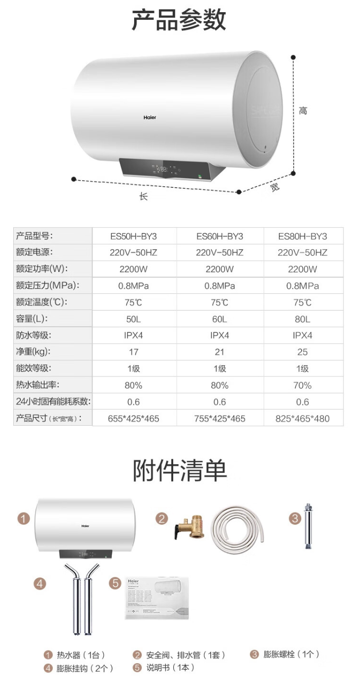 商品标题:海尔(Haier)ES60H-BY3电热水器(单位:台)
