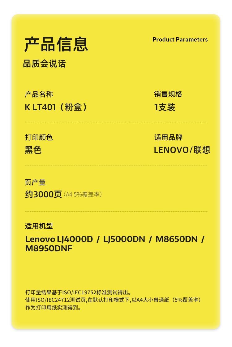 商品标题:科思特(KST)兼容K LT401粉盒(鼓粉分离)黑色单支装(适用Lenovo LJ4000D/LJ5000DN/M8650DN/M8950DNF)打印页数:3000页(支)
