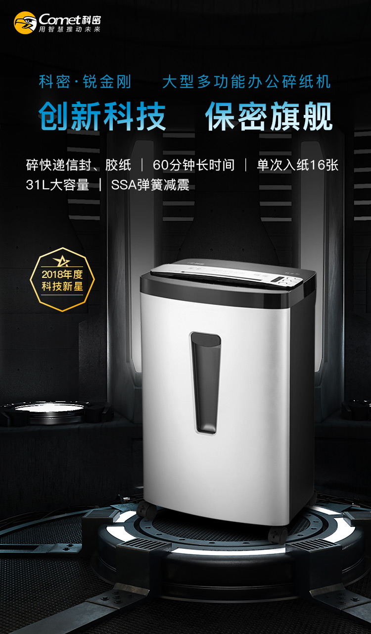 科密(comet)锐金刚办公商用碎纸机(单次16张 持续60分钟 31L 可碎卡、光盘、快递纸盒、信封)(台)