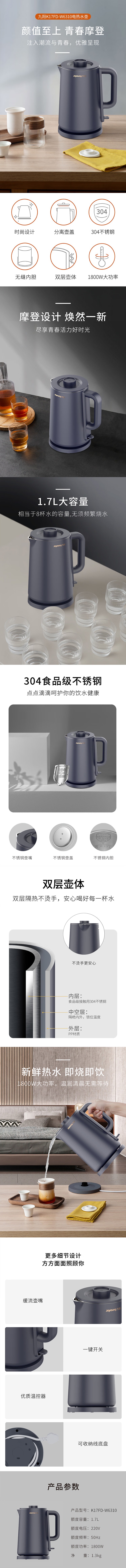 商品标题:九阳(Joyoung)电水壶 烧水壶热水壶 1.7L无缝内胆 双层锁温防烫 K17FD-W6310(台)