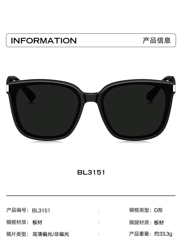 商品标题:暴龙BOLON 太阳镜 偏光太阳镜BL3151 C10 亮黑色(单位:副)男女同款